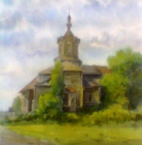 Миколаївська церква в с. Сибереж. Акварель початку 1950-х рр.