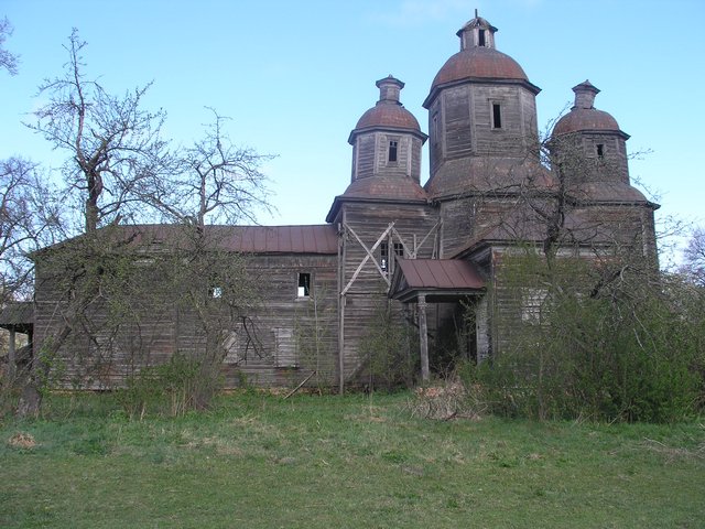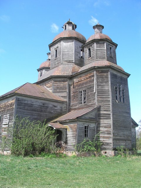 Але все ж таки я пішов до розвалин. Да… фундамент стояв, але і він місцями був розібраний. Поряд з ним стояли надмогильні пам’ятники церковного кладовища, які також були дуже пошкоджені. Якщо уважно придивитися, то можна побачити, що в плані церква була хрестоподібна, досить невелика. Але стан збереженості і відсутність часу на більш детальне обстеження, не дозволяли довідатись чогось більшого. Я вже збирався йти, але раптом помітив щось у кущах біля розвалин. Розгріб трохи гілки… і те, що я побачив вразило мене. Це були залишки куполів, уважніше придивившись, розібрався, що їх було два, причому вони були різні, я дійшов висновку, що церква мала ще й дзвіницю…».