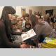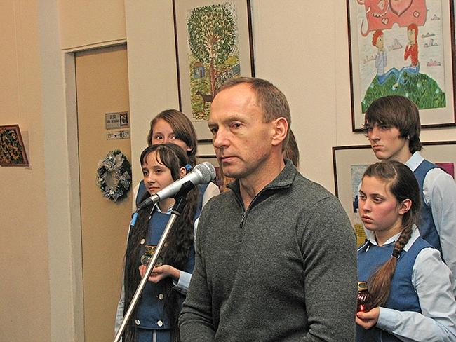 А затем, юные художники перешли в соседний зал за праздничный стол, а взрослые сосредоточились на осмотре и приобретении картин. Работники музея подготовили каталоги картин с ценами. Цены вполне доступные — от 100 до 350 гривен.