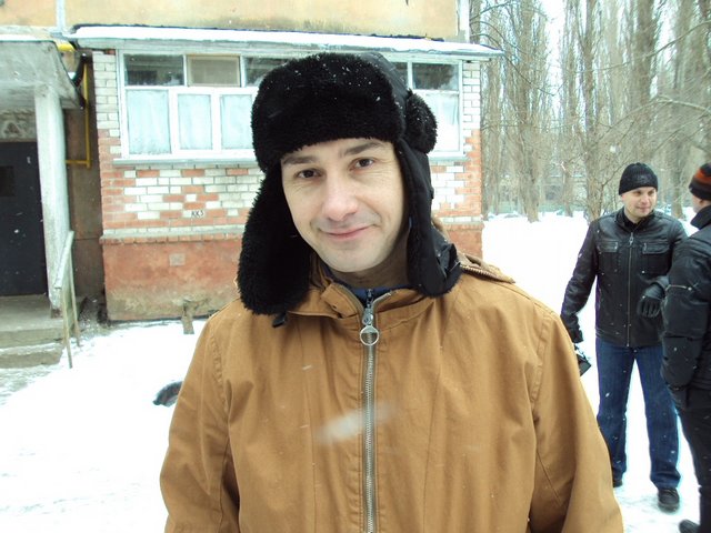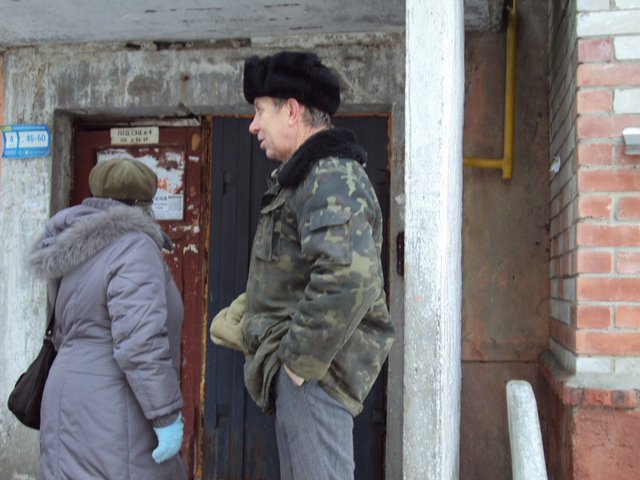 Среди людей, которые собрались возле дома помимо участников общественных организаций, журналистов и милиции был и этот мужчина. Это сотрудник ЖЕКа, которого прислали специально для того, чтобы выламывать входные двери в квартиру. Представиться он не захотел, фотографироваться тоже. О том, что взлом двери отложили на 10 дней ему, судя по всему, сказать забыли, поэтому работник ЖЕКа еще долго стоял под подъездом дома.