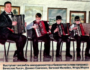 Вот и 9 января в актововом зале больницы ученики музыкальной школы №1 имени С. Вильконского устроили настоящий рождественский концерт. Свое мастерство продемонстрировали ансамбль народных инструментов (домры и балайки), руководители — Светлана Матвиенко и Владимир Буланенко; ансамбль гитаристов «Соняшник», руководитель — Оксана Старицкая; ансамбль аккордеонистов и баянистов, руководитель — Вячеслав Лысач; ансамбль скрипачей «Чарівні віолінки», руководитель — Вера Красноголовая; вокальный ансамбль «Перлинка», руководитель — Инна Кумакова. Были и сольные номера—8-летняя Екатерина Богдан исполнила на фортепиано отрывок из оперы Моцарта «Волшебная флейта», 6-летняя Анна Кабенок спела песню «Дед Мороз», 12-летняя Инга Бачинская под собственный аккомпанемент на бандуре исполнила песню «Хрустальная зимушка». В перерыве детей развлекали веселыми загадками и шутками преподаватель по классу синтезатора и концертмейстер Лариса Забара и преподаватель по классу домры Светлана Матвиенко.