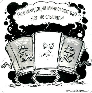«Ваша начальница заявила о пособиях от нескольких издательств, которые можно посоветовать покупать абитуриентам, т. к. они получили одобрение Минобразования. Названия издательств не подскажете?» — обратились мы в пресс-службу Украинского центра оценивания качества образования. Пришел ответ. В ответе было написано, что УЦОКО может только выразить свое мнение по поводу того или иного пособия. Давать гриф или нет — решает Минобразования и Институт инновационных технологий, ответственный за учебники. Когда мы напомнили, как в прошлом году Центр пропагандировал сборники одного издательства, в ответ услышали: в этом году у Центра не было времени на подобные дела. Тоесть сейчас ни одна книжка для подготовки к тестированию не рекомендована теми, кто это тестирование проводит!