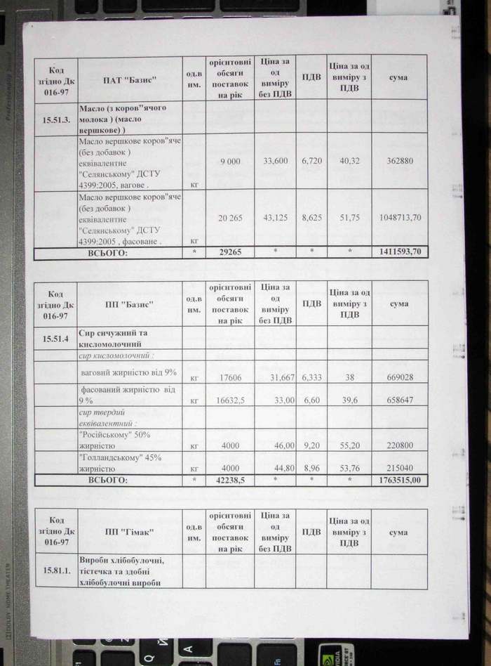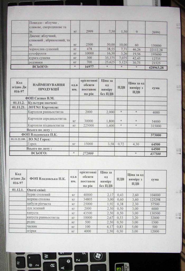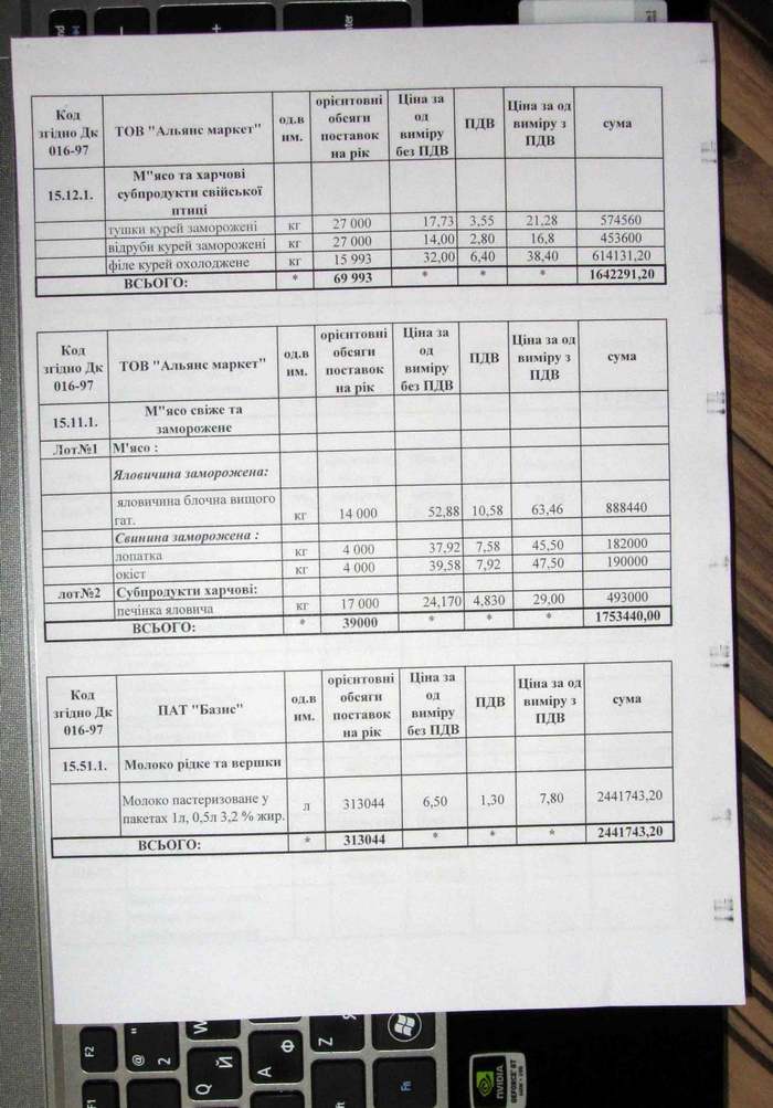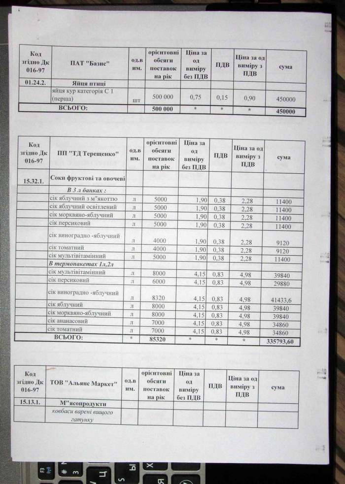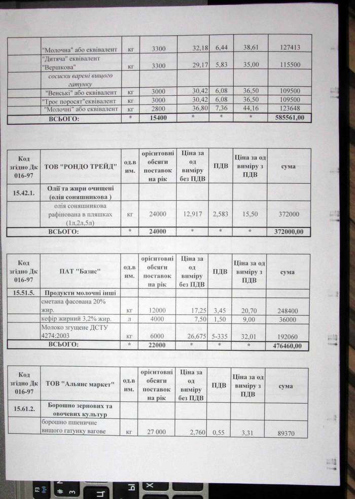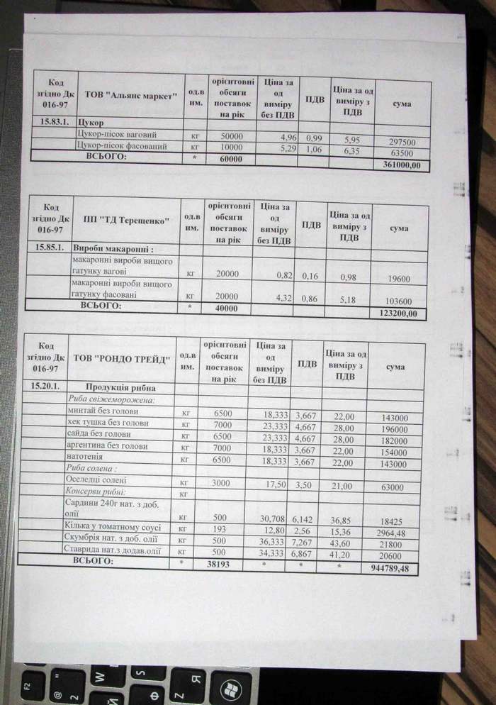 Закупку продуктов для дошкольных заведений Чернигова производит управление образования Черниговского городского совета. Согласно действующему законодательству, закупки за бюджетные средства должны проводиться на открытых торгах, в которых могут принять участие все желающие. В управлении образования Чернигова для этих целей создан комитет по торгам, который возглавляет заместитель начальника управления образования Михаил Рубан. Обязанности секретаря комитета по торгам управления образования исполняет Ольга Ляховец.