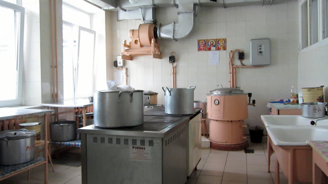 Приготовление пищи на 248 детей – обязанность шеф-повара Екатерины Мазепы, которой помогают два повара и два подсобных работника. Для того, чтобы поспеть приготовить завтрак, повара начинают готовку в шесть часов утра. На кухне для этого есть все необходимое – новая электроплита, кастрюли, посуда. Капитальный ремонт пищеблока в 36-м саду был произведен в 2008-м году.