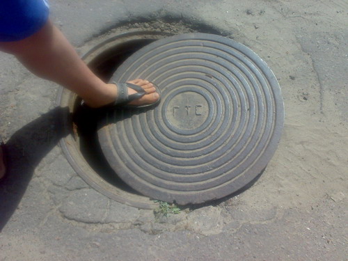На фото – один из многочисленных потенциальных убийц нашего города. Люк находится на перекрестке улиц Глебова и Невского (Новая Подусовка). Внешне крышка вроде бы плотно закрыта. Но стоит ее чуть зацепить ногой – перед Вами появляется яма глубиной 2 –– 3 метра.