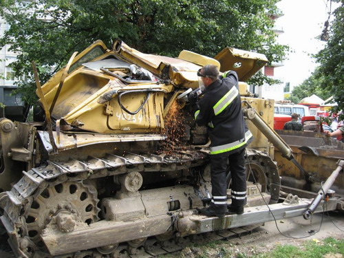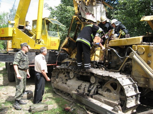 Перевернути і знову поставити трактор на гусениці вдалося за допомогою двох потужних автокранів та вантажного автомобіля "КрАЗ". Потім рятувальники за допомогою спецінструмента розрізали роздавлену кабіну та достали тіло тракториста. Одночасно з цим, щоб уникнути спалаху розлитої солярки, було проведено розгортання обладнання від пожежної автоцистерни.