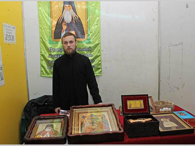 Послушник Евгений (Ставропигиальный мужской монастырь во имя святого преподобного Паисия Величковского, г. Севастополь): — В 2010 году монастырь, решением Священного Синода Украинской Православной Церкви, получил статус ставропигиального. В монастыре находится часовня в честь святителя Нектария митрополита Пентапольского, Эгинского чудотворца, целителя раковых заболеваний. В ней хранятся великие святыни: более 1000 частиц мощей угодников Божьих, и мы привезли на выставку некоторые из них.