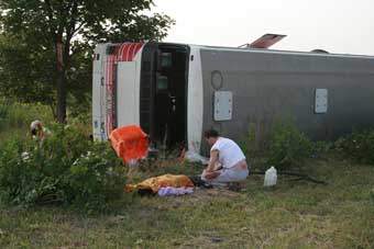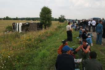 В неділю 3 серпня близько 6-ї години ранку на 145 кілометрі автодороги Київ - Чернігів - Нові Яриловичі біля повороту на с.Шестовицю зазнав аварії молдавський автобус „Setra" сполученням Москва - Кишинів.