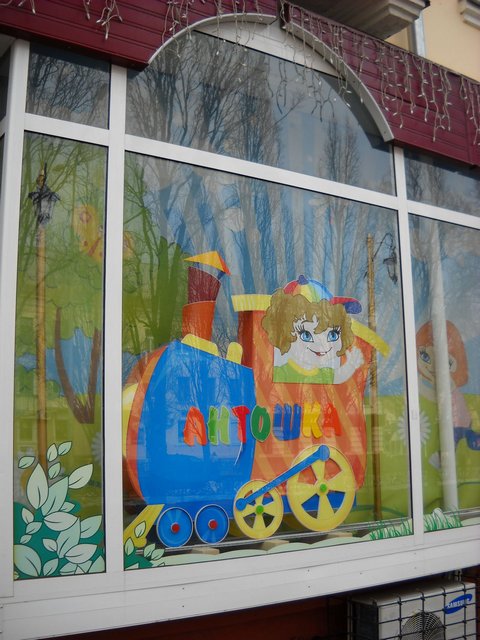 От остальных отличаются в основном магазины, торгующие товарами для детей. Вот там на витринах можно увидеть хоть какие-то стилизованные паровозики, самолетики, фигурки детей и животных. Но чего-то такого, ради чего можно было бы задержаться – работающего, механического, оригинального, завлекающего потенциальных покупателей, тоже не было.
