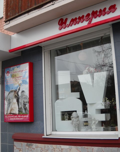 Совсем недавно, проезжая мимо офиса агентства, которое занимается организацией различных мероприятий, в том числе свадеб, я заметила в окошке слово Love, сложенное из большущих объемных букв белого цвета. Может, ничего такого сверх выдающегося в этом оформлении и нет, но идея мне понравилась, а витрина - запомнилась.