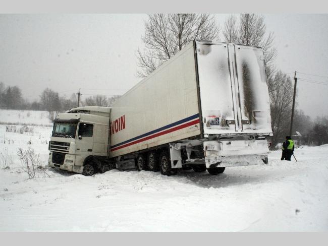 Подібним чином розгорталася ситуація і буквально в двох кілометрах звідти, у приміському селищі Зарічне на автошляху Чернігів – Славутич. Там раптово «склався» автопоїзд, вщерть завантажений дерев’яними піддонами. Водій зізнається, що їхав зовсім повільно, проте в якийсь момент відчув, як ситуація безповоротно виходить з-під його контролю, і він не здатний зовсім нічого вдіяти. Внаслідок події постраждалих немає. Працівники ДАІ негайно організували роботу спеціальної техніки з розчищення під’їзду до постраждалого автопоїзда для його розвантаження, після чого буде забезпечено буксирування вантажівки з кювету на дорогу.