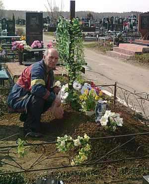 Яков Наумович на могиле жены