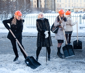 23 марта, в субботу, учителя всех школ Чернигова вышли на работу. Взяв в руки лопаты, они пытались расчистить снег на территории школы.