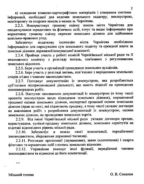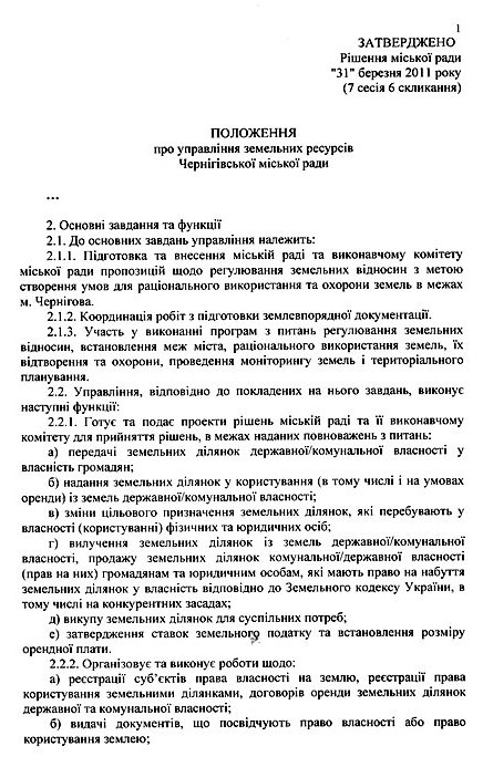 1. Регулирования земельных отношений с целью создания условий для рационального использования и охраны земель в пределах Чернигова.