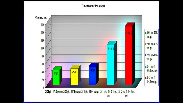Что же касается платы за землю в целом, то в 2012 году сумма сборов превысила 80 млн. грн, при том, что в 2011 году она была на уровне 48 млн. грн.