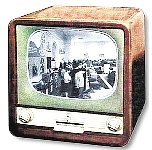 У післявоєнний час повідомлення про перший телевізор знаходимо в М.-Коцюбинській районній газеті за листопад 1953 року. Його було встановлено в червоному куточку Ковпитської МТС. Згодом у 1957 році телевізор з'явився в конторі колгоспу села Ведильці. У вересні 1960 року профспілковий комітет Чернігівської держплемстанції с. Довжик придбав для червоного куточка телевізор «Львів-3». У 1964 році в Скугарях селяни збиралися в будинку вчителів Острицьких для перегляду телевізійної програми. Так звичайний сільський краєвид доповнився новою ознакою часу - телевізійною антеною над будинками селян. У 1971 році понад 200 родин сіл Андріївка та Рудка збиралися вже біля власних телевізорів.