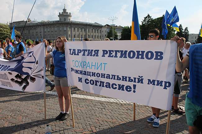 Эмоциональной была речь Народного депутата от Партии регионов Михаила Чечетова: «Без победоносного 9 мая 1945 года не было бы ни нас с вами, ни свободной демократической Украины, ни свободной демократической Европы. Своей историей мы можем гордиться, самые героические ее страницы написаны кровью советских солдат спасших мир от фашисткой чумы. Мы всегда должны помнить, какой ценой завоевано счастье жить под мирным небом и ясным солнцем. Мы должны из уст в уста, своим детям, внукам, правнукам, передавать правду о героическом подвиге советского солдата отстоявшего мир на земле. Трудно представить, что почти через семьдесят лет великой Победы у нас появятся мелкие людишки, грязные политиканы, которые пытаются поднять знамя неофашизма, антисемитизма и расовой неприязни. Трудно представить, что появятся политические силы, которые будут называть себя «титульной нацией», как в 30-е годы в фашистской Германии была высшая арийская нация. Эти политические силы унижают великий еврейский народ, называя его жидами. Трудно представить, что появятся политиканы, которые будут пытаться отменить святое — День Победы. Я уже говорил, где бы ни были сопливые молодчики, но если бы они встретились в 45-ом с советским солдатом, то сидели бы по схронам и норам. Партия регионов заявляет во весь голос — фашизм в Украине не пройдет. Очаги фашизма мы будем каленым железом выжигать на теле Украины. Нам выпала великая честь — отстоять и защитить Победу, завоеванную нашими дедами и прадедами. Эту почетную миссию мы с честью выполним!»