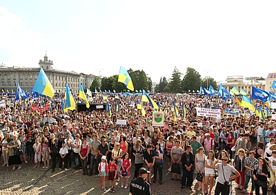 В рамках общегородских праздничных мероприятий, посвященных Дню Европы, на Красной площади состоялась акция "Украина - Европа без фашизма". В этом году фестиваль стран Европы уже в пятый раз собирает молодежь, представителей общественности, а также людей старшего поколения. Праздник включал в себя не только выставки-презентации, но и по инициативе "Молодых регионов", художественный проект "Украина европейская". Все желающие оставили надписи в форме лозунгов, пожеланий и призывов на специальном стенде, который стал олицетворением общественного мнения относительно видения будущего Украины в европейском сообществе.