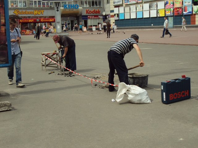 «Это специальные столбы для установки забора. Скоро здесь начнутся строительные работы. Я точно не в курсе, но скорее всего, будут достраивать вторую часть торгового комплекса «Аквариум» и ремонтировать подземный переход» – пояснил один из рабочих.