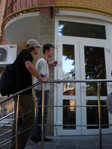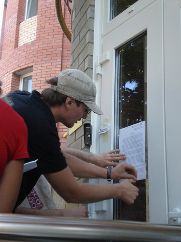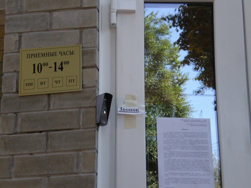 Оскільки двері не відчинили - Павло Пущенко клеїть на двері консульства текст звернення