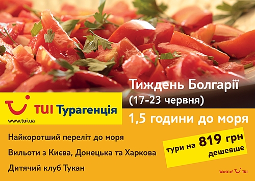 Тематическая неделя Болгарии в TUI + скидка 100 у.е.!