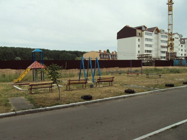 Но стоянка это еще ничего страшного. Дело в том, что въезд на строительную площадку находится в непосредственной близости от детской игровой площадки.