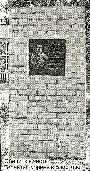 В Блистове с вниманием относятся ко всему, что связано с жизнью Терентия Кореня. В селе есть улица его имени. Несколько лет назад благодаря усилиям местного сельского совета появился обелиск, посвященный знаменитому силачу. А поскольку в этому году исполняется 130 лет со дня рождения Терентия Кореня, то бывший начальник почтового отделения Блистовы Роман Боюн (недавно он перешел на другую работу) воплотил в жизнь интересную идею - выпустил марку, посвященную Терентию Кореню.