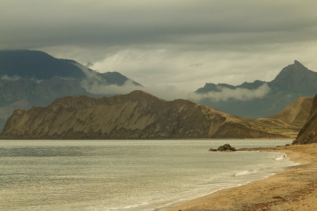 Наступного дня у нас по графіку виїзд із бухти до Коктебеля і подорож до с. Малоріченське. У ситуацію неочікувано втручається погода. Гроза, під звуки якої ми ночували в Тихій бухті першу ніч, вирішила повернутися. Пагорби навколо бухти вкриті пасмами хмар, і лінивий дощ іде, то вщухаючи, то поновлюючись, із самого ранку. Маршрутки по мокрій глині не поїдуть, доведеться йти до Коктебелю пішки.