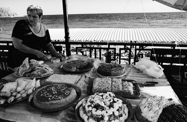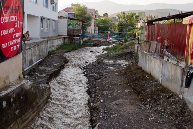 Відносно привабливості селища як курорту. Зі слів мого товариша, який вже став тут місцевим, зараз ціни на оренду житла, якщо домовитися, починатися можуть від 50 грн., в сезон буде по 75. Можна, за нашим прикладом, розташуватися з палаткою десь на схилах над морем. Центральний піщаний пляж досить недовгий, але в цю пору малолюдний. Прямо посеред нього в море впадає потічок з гір, який у дощ перетворюється у бурхливу брудну річку. Відповідно, після дощу (якраз коли ми приїхали) море на кількасот метрів в обидва від гирла річечки боки перетворюється у мутну малопривабливу водойму, цінність купання у якій значно падає. Хоча люди уваги не звертають і брьохаються у воді, особливо діти. Вздовж пляжу повно торгових точок і кафешок, де ціни є "курортними". Дещо дешевше можна закупитися в магазинах у центрі села, хоча і там продукти харчування трохи дорожчі, ніж в Чернігові.