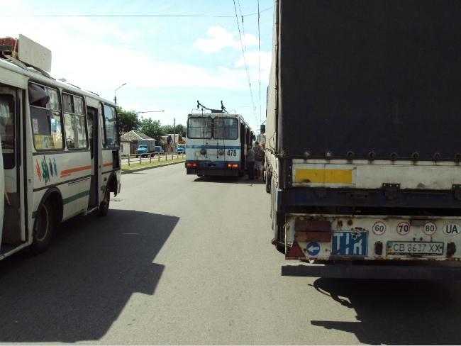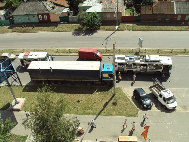 По ул. Рокоссовского из-за фуры не смогли разъехаться автобус и троллейбус (фото)