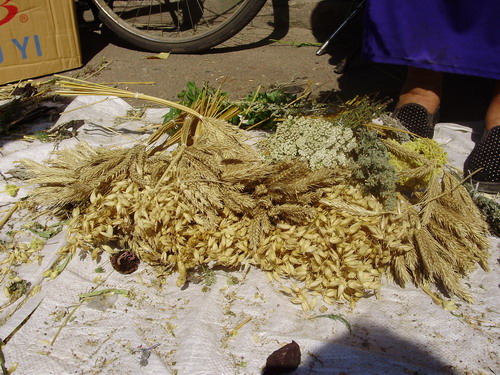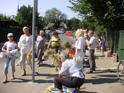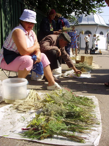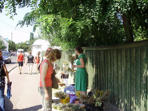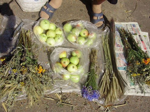 Наши корреспонденты побывали возле Воскресенской церкви, которая находится в районе Центрального рынка. Сегодня в этом месте торговля букетиками из луговых трав, пшеницы, яблоками, грушами и медом шла довольно бойко. Продавец Татьяна рассказала нам, что в состав букетов традиционно входят такие травы: пижма, полынь, садовые цветы, мята, васильки, бессмертник, чертополох, мелиса, календула, тысячелистник. Цена таких букетиков от 50 копеек до 2-х гривен. В зависимости от размера. Купленные букеты и фрукты черниговцы традиционно святят в церкви. Между прочим одна из покупательниц, Паремская Людмила, сообщила, что уже полтора часа ходит по рынку и не может найти яблоки. Странно, ведь в такой день яблоки, пожалуй, самый популярный товар.
