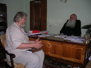 Последнюю главу романа-дилогии “Великий князь” о благоверном князе Игоре Черниговском великий русский писатель Юрий Сбитнев приехал дописывать на родину прадедов - в Новгород-Северский. Вчера, 21 августа Юрий Николаевич встретился с епископом Черниговским и Новгород-Северским УПЦ Амвросием, чтобы получить у владыки благословение на окончание главного труда всей жизни. Писатель вручил епископу Амвросию экземпляр первой части “Великого князя” с дарственной надписью и рассказал о работе над романом.