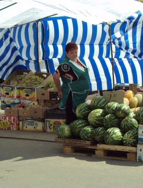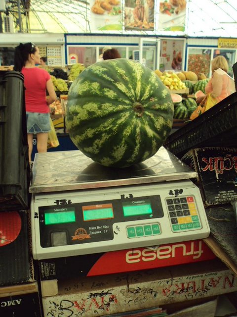 Продавец, у которой я покупал арбуз, также не стала требовать от меня доказательств недовеса. Она, как и продавец дыни спросила, сколько грамм не хватает, и без извинений отдала мне деньги. Я не говорил, что я журналист, и просто, якобы ради спортивного интереса, задал ей несколько вопросов по поводу обвеса и ее зарплаты. И вот, что она мне рассказала: