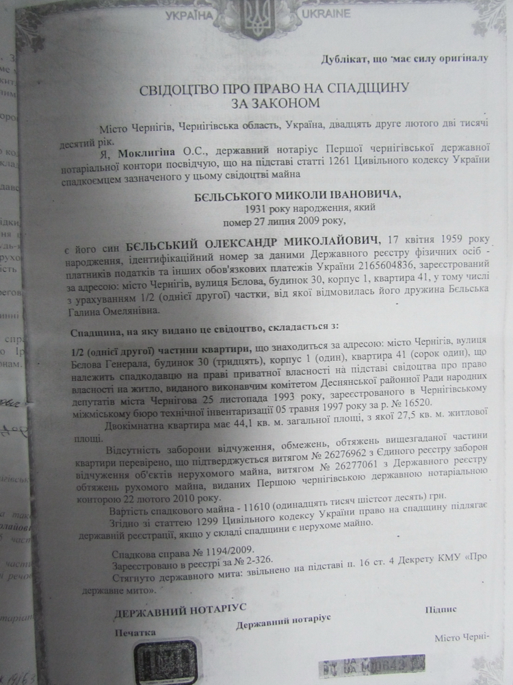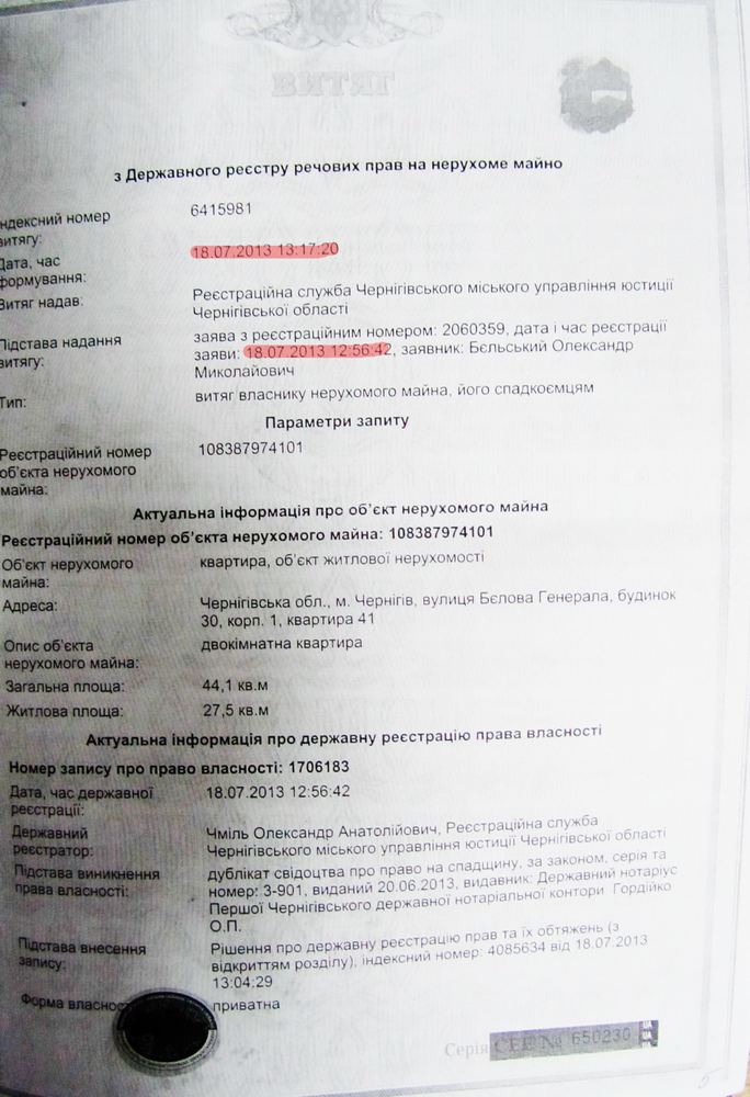 Для того, щоб Олександр Бєльський мав змогу повторно продати (у даному випадку - обміняти) квартиру, яка вже раз продана і документи на право власності якої продавець залишив у нотаріуса, що посвідчувала угоду, його представникові «чорному ріелтору» Дмитру Гаркавому необхідно було виготовити їх дублікати.