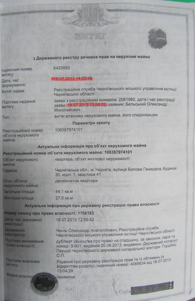 Що нині треба зробити за таку щедру послугу - цікаве питання до прокуратури. Адже по двом Витягам, які реєстрував Бєльський, було встановлено рекорди із часу проходження документа - 21 хвилина і 9 (!) хвилин. Достатньо лише зіставити час надходження заяви і час надання витягу на документах.
