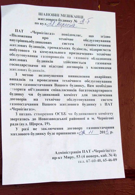 Чем грозит отключение газа зимой в квартирах с печным газовым отоплением – объяснять никому не нужно. Люди и сами были шокированы сообщением. На вопрос «Что делать?», в «Черниговгазе» им посоветовали создать ОСМД, которое и заключит договор на обслуживание.