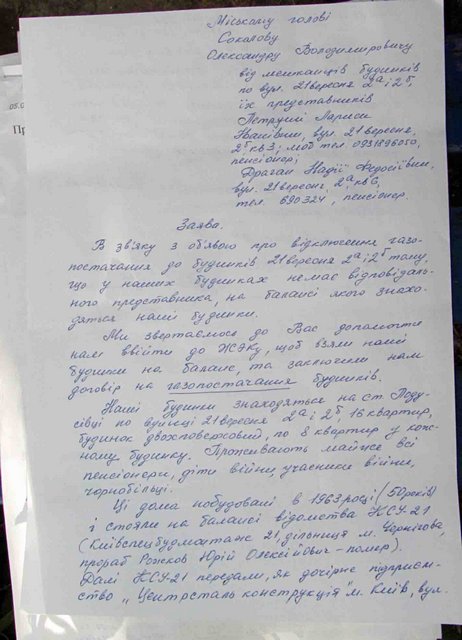 Когда журналисты 29 сентября приехали на место событий, то узнали, что сроки отключения якобы перенесли на второе ноября. Причина переноса – обязательства поставщика услуг – ПАО «Черниговгаз» в соответствии с договорами уведомлять абонентов о прекращении газоснабжения за месяц.