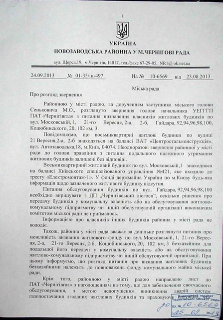 Но, как нам стало известно, ПАО «Черниговгаз» еще 20-го (!) августа соответствующим письмом известили мэра и руководителей районных советов о существующей проблеме. В «Черниговгазе» утверждают, что также никакого ответа свое обращение не получили! Неужели даже то, что в перечне на отключение фигурирует 19 многоквартирных домов (а это - 149 квартир!) не заставило чиновников разобраться в сути проблемы?