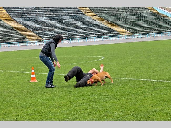 Питбуль Жанна за работой.