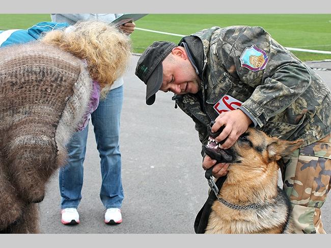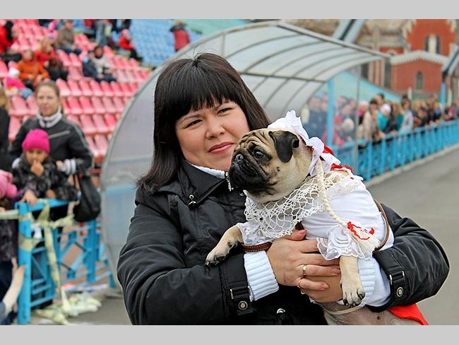 На параде, во всей красоте стараются показать себя все, и собаки, и их хозяева. Желают друг другу удачи!