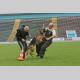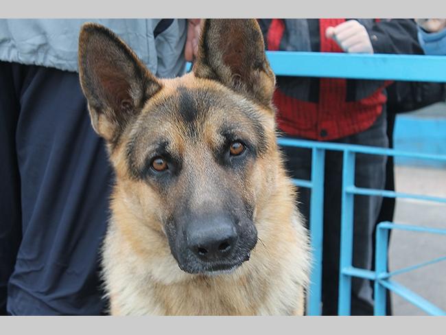 Немецкие овчарки с большим вниманием наблюдают за выступлением своих коллег.
