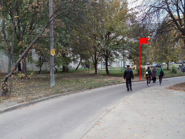 Дорога, ведущая во дворы. По словам протестующих жителей, территория центра будет вплоть до флажка на фото