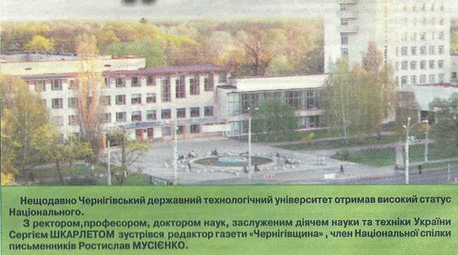 Теги: Сергій Шкарлет, ЧДТУ, "Чернігівщина"