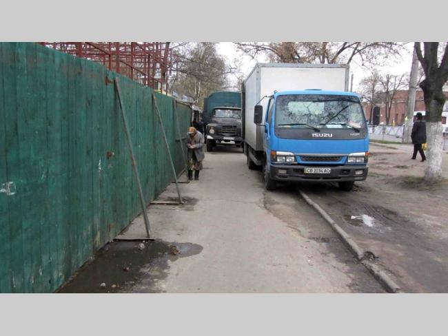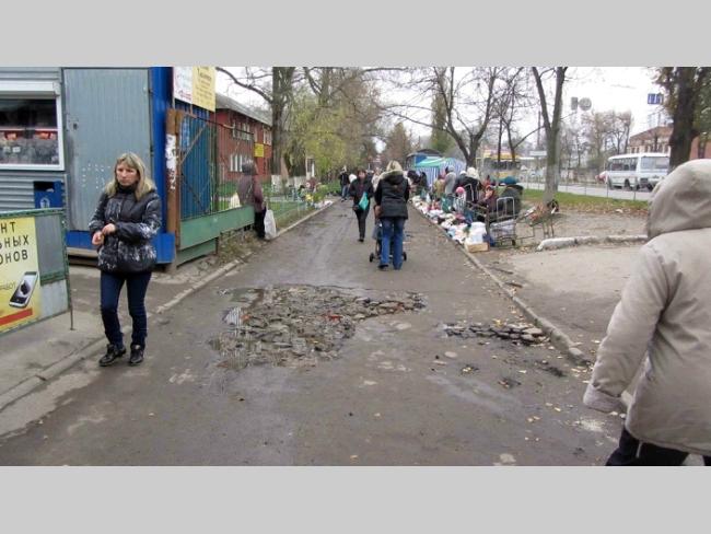 Естественно, мы услышали человека и выехали на Ремзавод, чтобы посмотреть, что же там на самом деле. Все сказанное подтвердилось. Грузовики действительно разбивают дорогу и спихивают людей в грязь. Почему-то вспомнилась история, которая произошла лет пять тому назад, когда именно на этом же рынке грузовик зацепил козырек киоска. Киоск сдвинулся в сторону и придавил женщину. Насмерть…