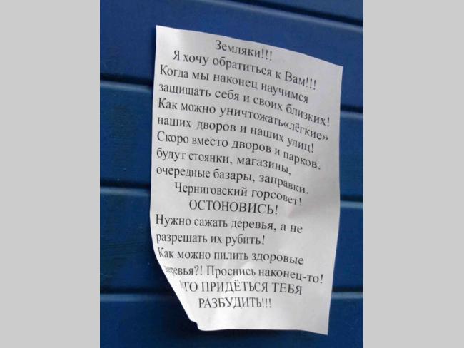 Естественно, сложившаяся ситуация вызывает недовольство населения действующей властью. И хотя активных выступлений против строительства рынка на Ремзаводе нет (все-таки не центр Чернигова и народ не столь активен) объявления, призывающие к протестным действиям, в районе рынка мы уже заметили…