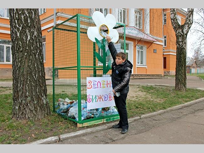 Действительно, за пять минут наблюдений возле школы, можно заметить, что дети с энтузиазмом отнеслись к этой акции. Вот Дмитрий, специально приехавший к школе на велосипеде, энергично ногами сплющил пластиковую бутылку и в прыжке отправил ее в контейнер. Другие учащиеся также не забывали «отметиться» у зеленого контейнера.