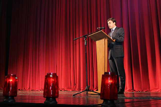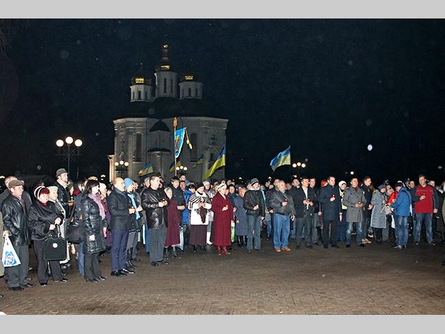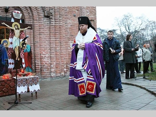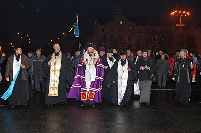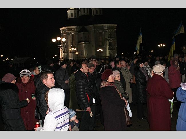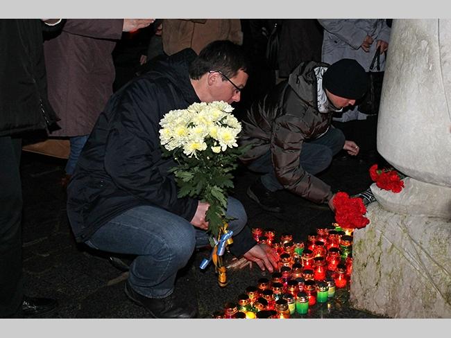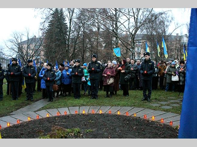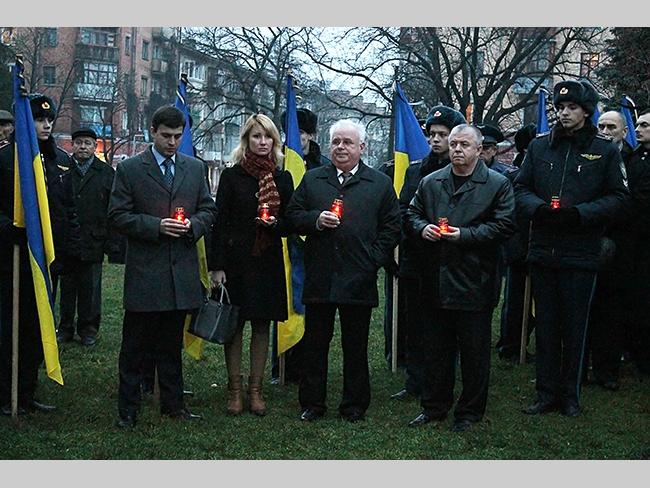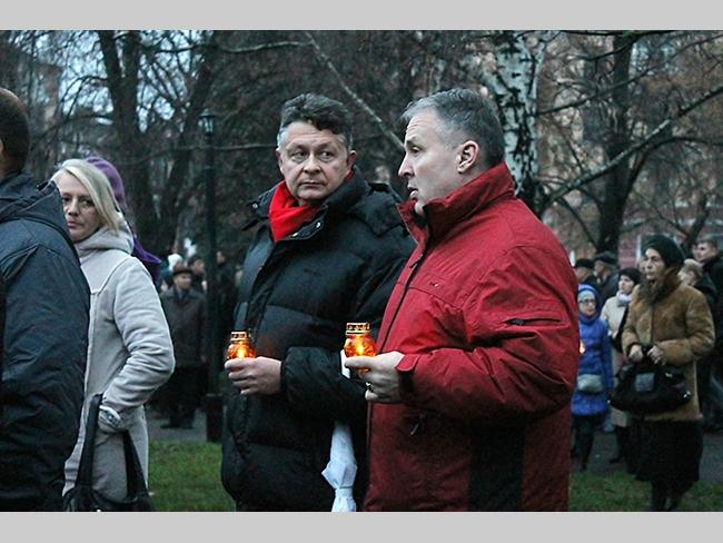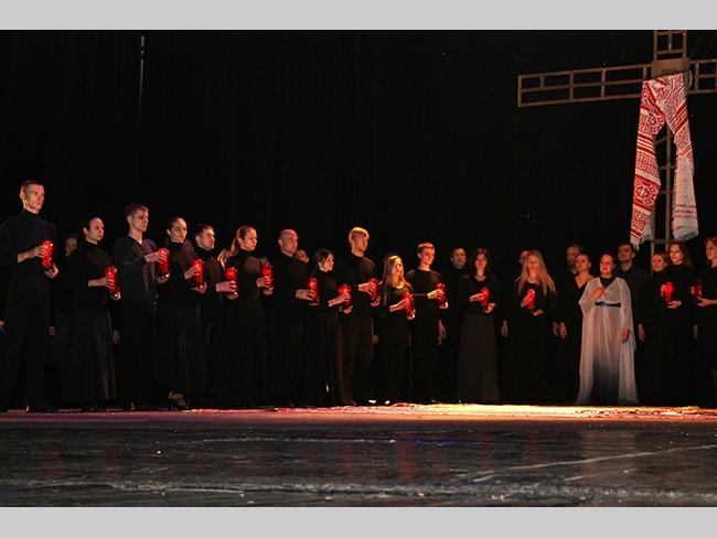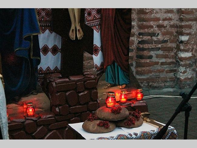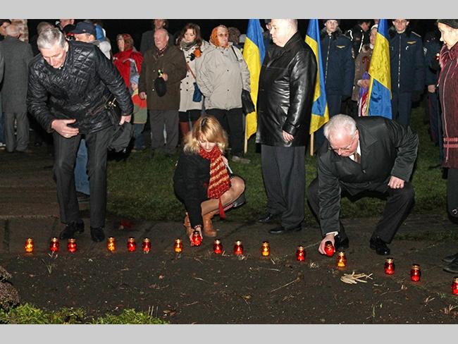 По окончании литературно-художественного мероприятия, городские и областные руководители, представители общественности приняли участие в митинге-реквиеме памяти жертв голодоморов и акции «Зажги свечу», которые проходили у Пятницкой церкви.