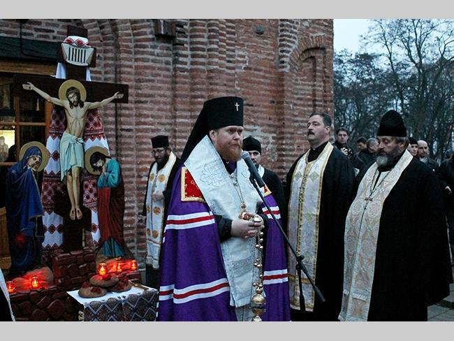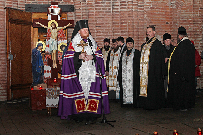 После окончания заупокойной литии, процессия, Крестным ходом с лампадами, прошла к Екатерининскому кафедральному собору, где также состоялся молебен и небольшой митинг.