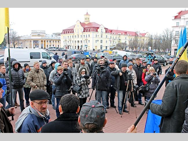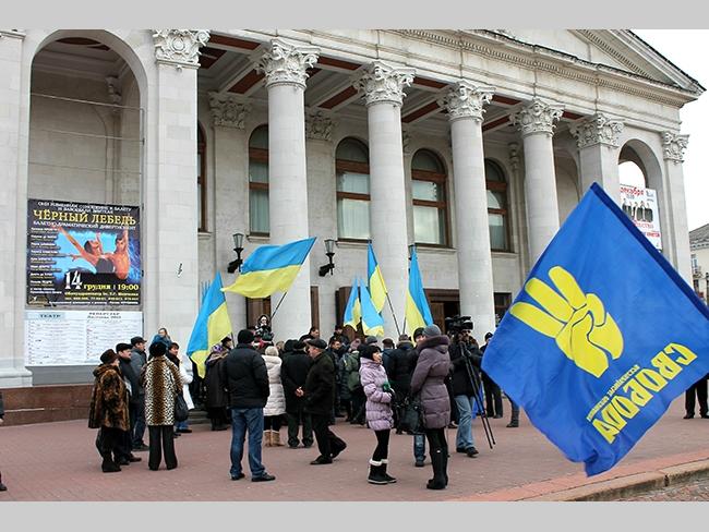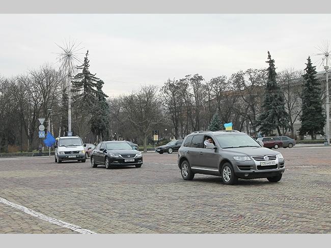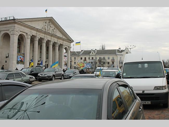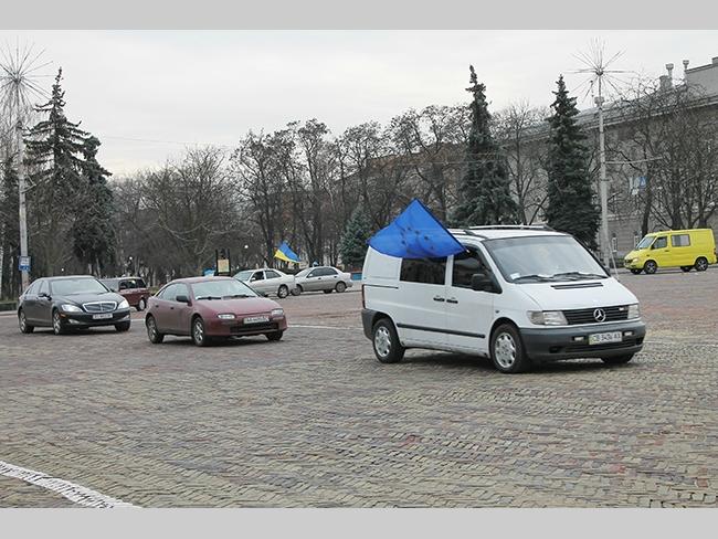 В 12.30, пока городские коммунальные службы в размеренном и неторопливом темпе устанавливали «Йолку» на Красной площади, у драмтеатра им. Т. Г. Шевченко собралось около полусотни автомобилистов, чтобы автопробегом по улицам города выразить свой протест против незаконных действий власти.