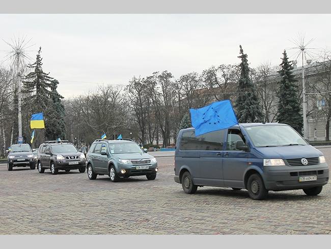 4 декабря в Чернигове, по инициативе областного штаба национального сопротивления, прошел автопробег в поддержку Евромайдана.